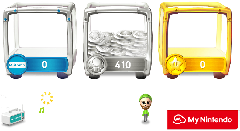My Nintendo works like a meta game. Players earn coins by completing missions, accomplishing tasks in the Miitomo app, and purchasing games on the Nintendo eShop for the Wii U and 3DS platforms. Coins can be redeemed for special prizes, like full versions of digital games, coupons to purchase games at a discount, special items for Miitomo and themes for your 3DS. Nintendo promises to add new rewards on a normal basis and give players new things to do in My Nintendo. Protip: Click the Super Mario block at the bottom of the page and continue to repeatedly click your Mii character to earn some bonus coins!