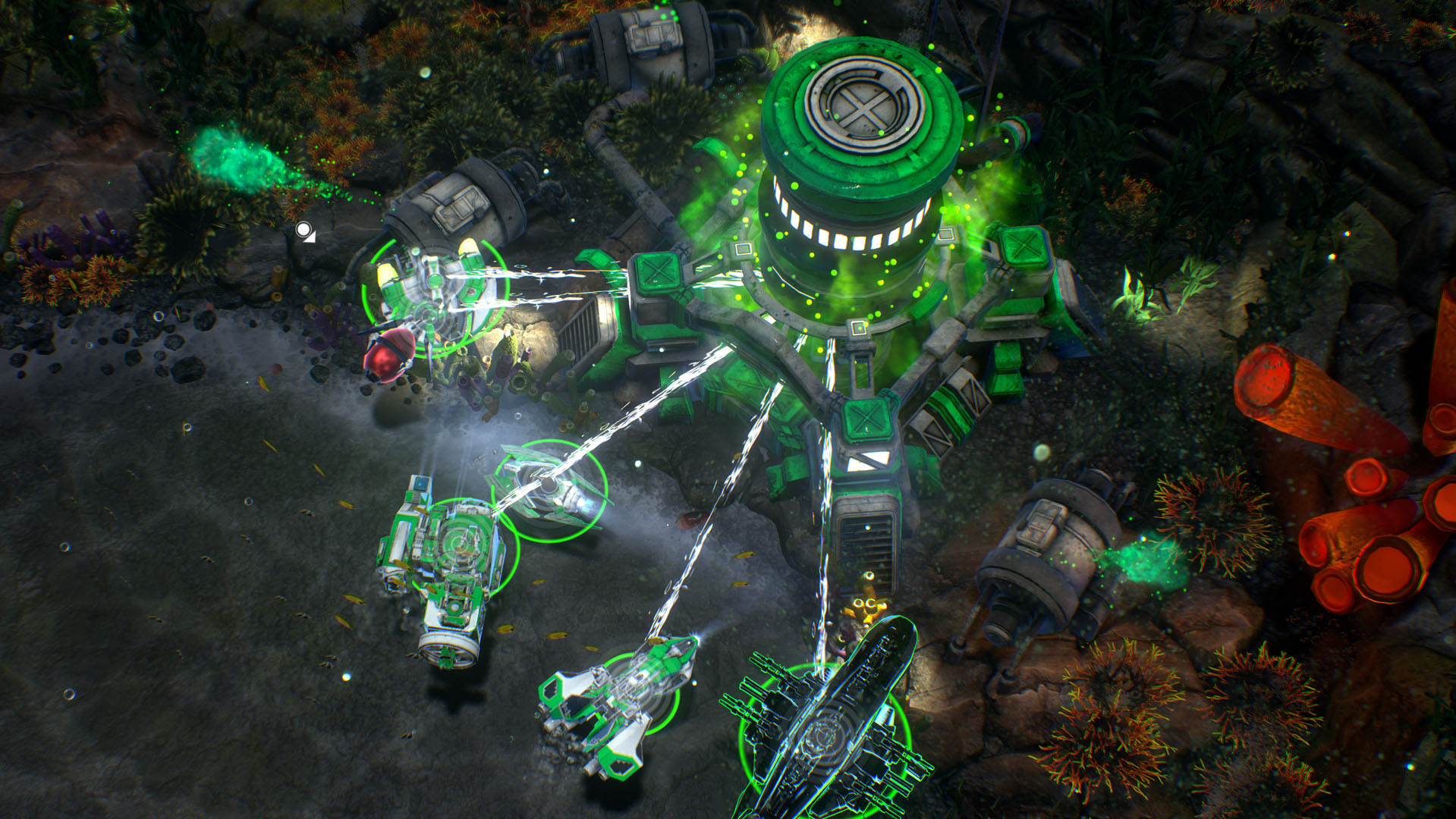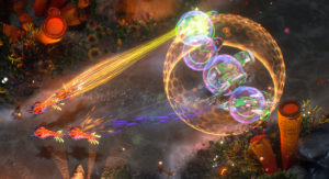 There was one game element that I found annoying, but other players could view as a strength: the oxygen timer. The game’s environment is underwater, and oxygen is a commodity to be valued. In addition to finding resources such as crystals and gas to help you build your base and new offensive units, you also have to replenish your ever-dwindling supply of oxygen. This is a game mechanic not seen in any other RTS to date. For the most part, you can only obtain more oxygen by killing monsters or other ships in the game world. So in essence, the oxygen timer pushes combat forward whether you like it or not. This was a borderline negative for me, because in previous RTS games I’ve enjoyed, a large source of gratification for me is to sit back and build up my base and army first, and then take a huge force over to the enemy to wipe them out. With the oxygen timer there is always a ticking clock that forces you to not sit back and build, but to get out and attack early and often. I don’t enjoy playing this way, so the oxygen timer was a deal breaker for me.