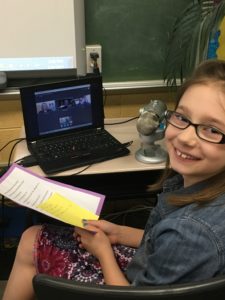 Immediately intrigued that a third grader was so interested in pursuing such a specific career, I quickly snapped a picture of the poster and tweeted it at Cissy Jones, a video game voice actor I had the pleasure of interviewing several months ago. Cissy retweeted the photo, which was in turn retweeted by several other prolific voice actors from the industry. That’s when the light bulb went off in my head as to how this could help encourage Amanda to pursue her career and teach her how the business works. I contacted Cissy and asked her if she would be willing to talk to Amanda over Skype in our classroom after school one day. She almost immediately agreed, and then Amanda’s mother, teacher and I worked together to coordinate a meeting.