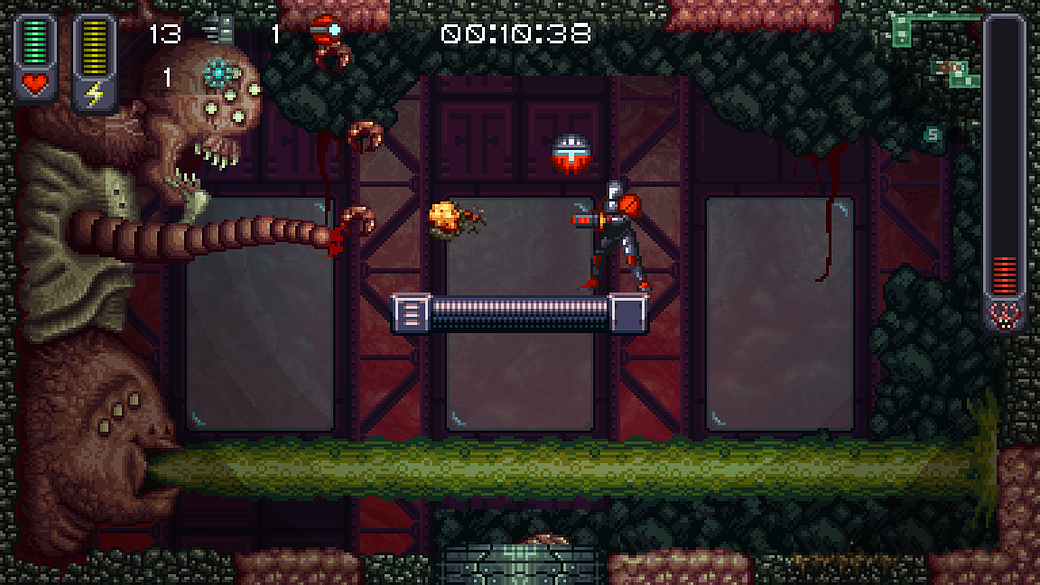 Fans of Super Metroid should feel right at home with A Robot Named Fight!. The gameplay, weapons, map, and even the soundtrack are very reminiscent of the beloved classic. The difference here is that the world is procedurally generated every time you play. The game boasts up to four billion unique runs, which is impressive for a $12.99 title. As you play, you’ll earn achievements for killing a certain number of enemies or even defeating a mini-boss for the first time. These achievements unlock available weapons and armor for subsequent runs, making your next try a bit easier.