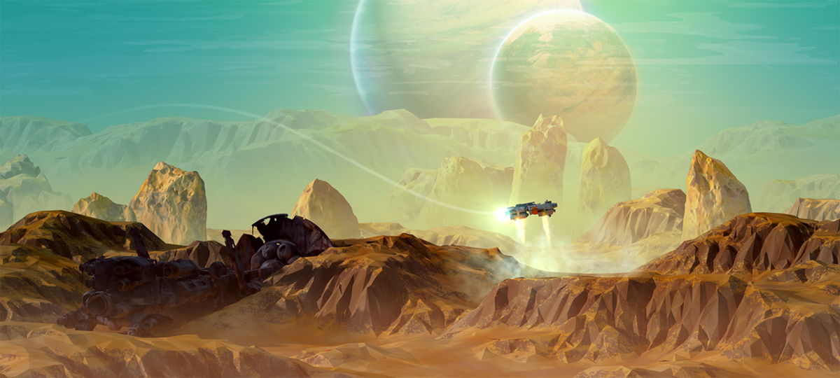 While this setup sounds incredible, the execution missed the mark for me. The gameplay consists mostly of physics-based, methodical action. In open space, you’ll navigate your ship from planet to planet with your thrusters. This includes a gravitational mechanic where you’ll need to enter a planet’s orbit in order to successfully enter its atmosphere. Once on a planet, the perspective changes from isometric to 2-D. Here you must navigate a shuttle using your thrusters against the gravitational pull of the planet. Your goal is to land on resources to harvest them, or dock with a settlement to take a diplomatic approach.