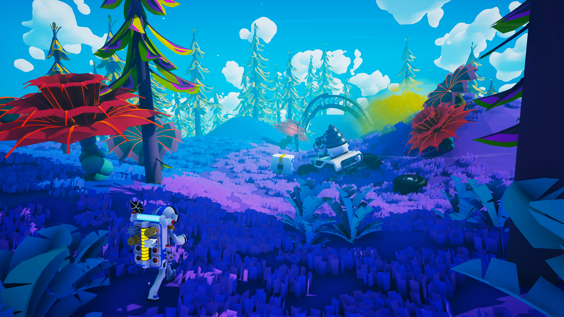 My favorite part about this game is the exploring. I wasn’t expecting caves when I first ventured out, but after falling down a hole I discovered a whole new world. The underground is absolutely beautiful. It’s loaded with glowing minerals and plants that pushed me to explore even more. I even stumbled upon the ruins of other explorers’ bases, rovers, and research that I could scavenge for myself. On certain occasions, I was even able to find fully intact buildings that required no unlocking whatsoever.