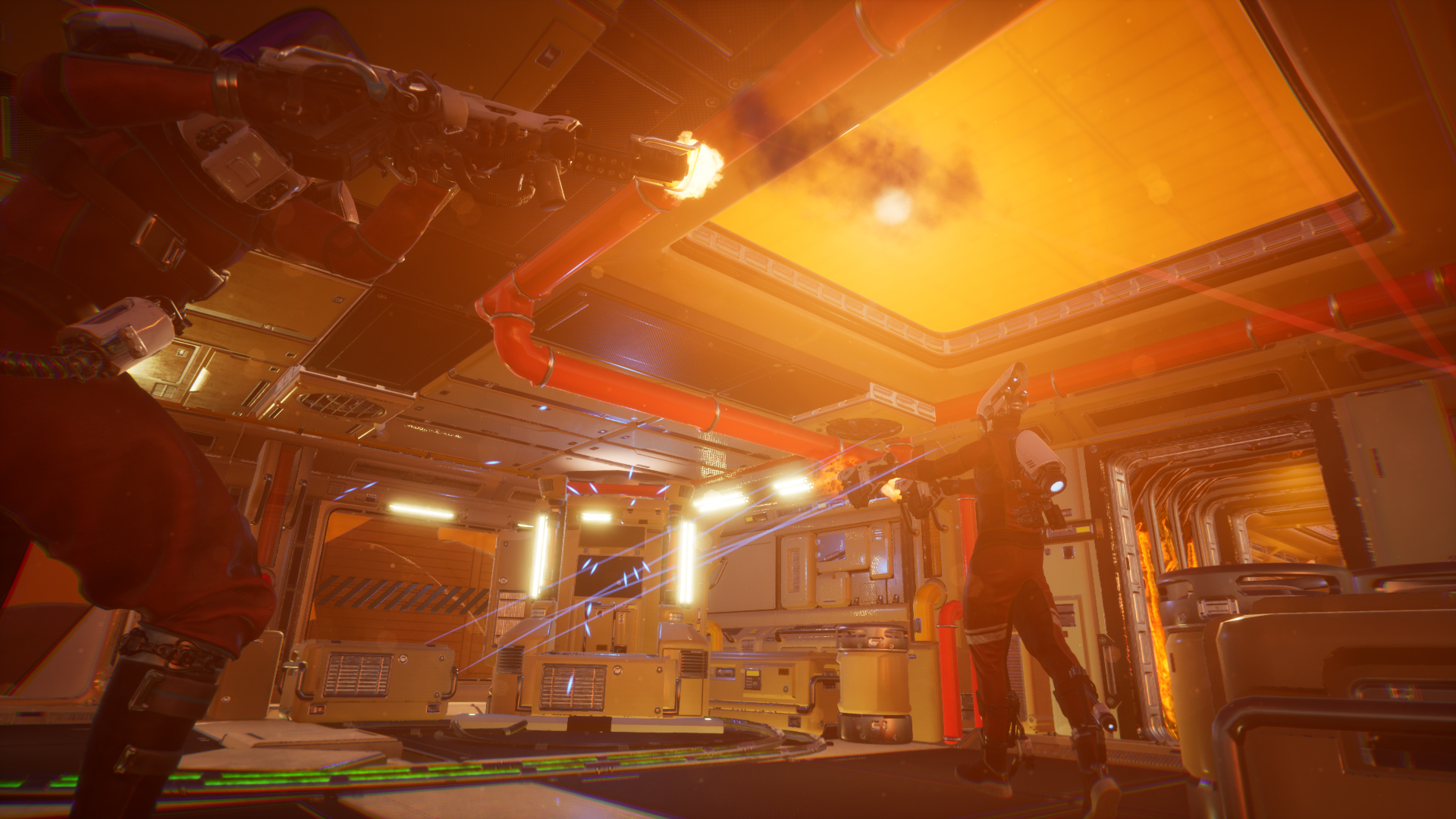 And that’s just the beginning of the many strategic approaches you can take. When I played, my opponent (who happened to be one of the devs) took a moment to spray fire at a random doorway. This affected my movement, as I had to avoid this gunfire while heading to thwart his path. There are so many clever possibilities to take when entering a match.