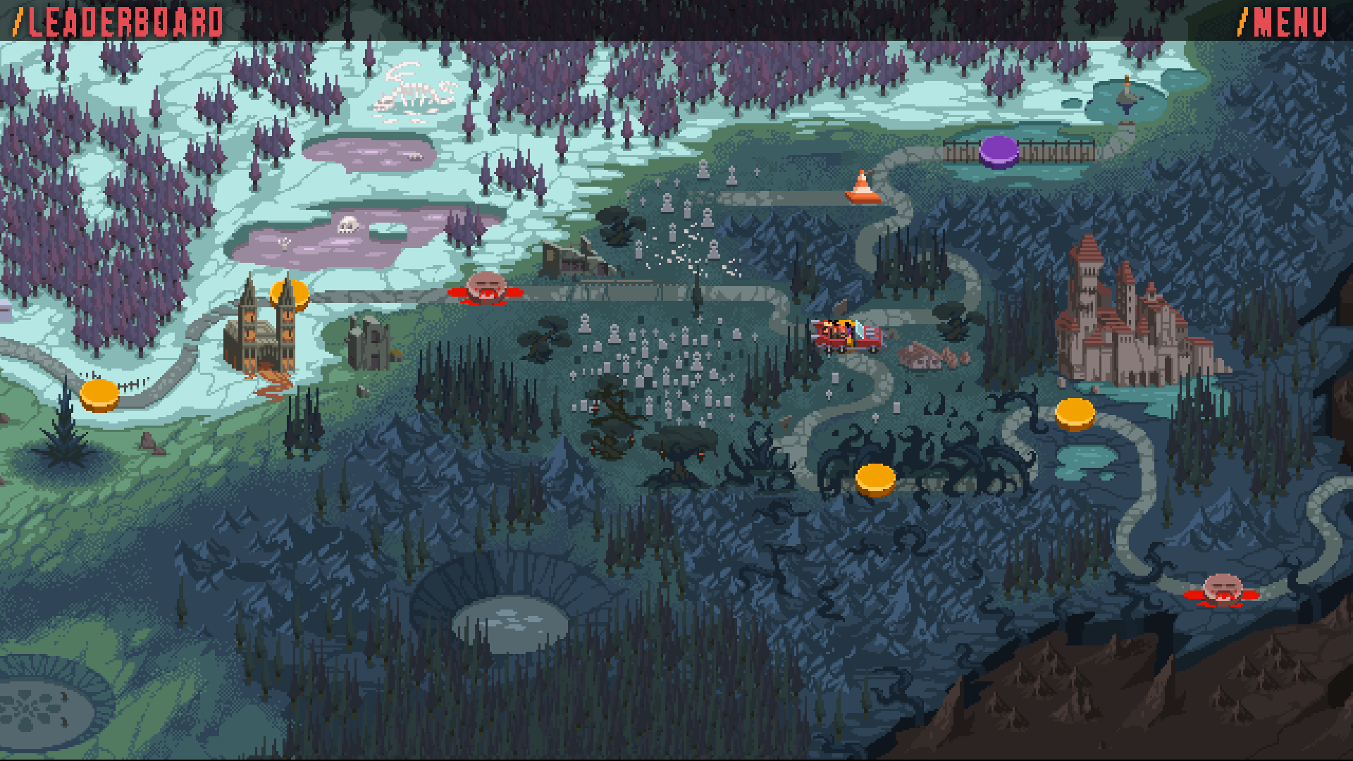 Thankfully, that’s the only real downside to Double Kick Heroes. The gameplay consists of two simultaneous highways of which to keep track. The first is the action itself as your Gundillac keeps the hordes invading from the left of the screen at bay. The second is your note highway, which gives you drum beats to land in rhythm on your controller (or keyboard). At first, you’ll simply be hitting bass drum notes, but as you progress, the game throws snare drums, high hats, and crash cymbals into the mix. Miss too many notes, and the enemies reach your vehicle, causing it damage.