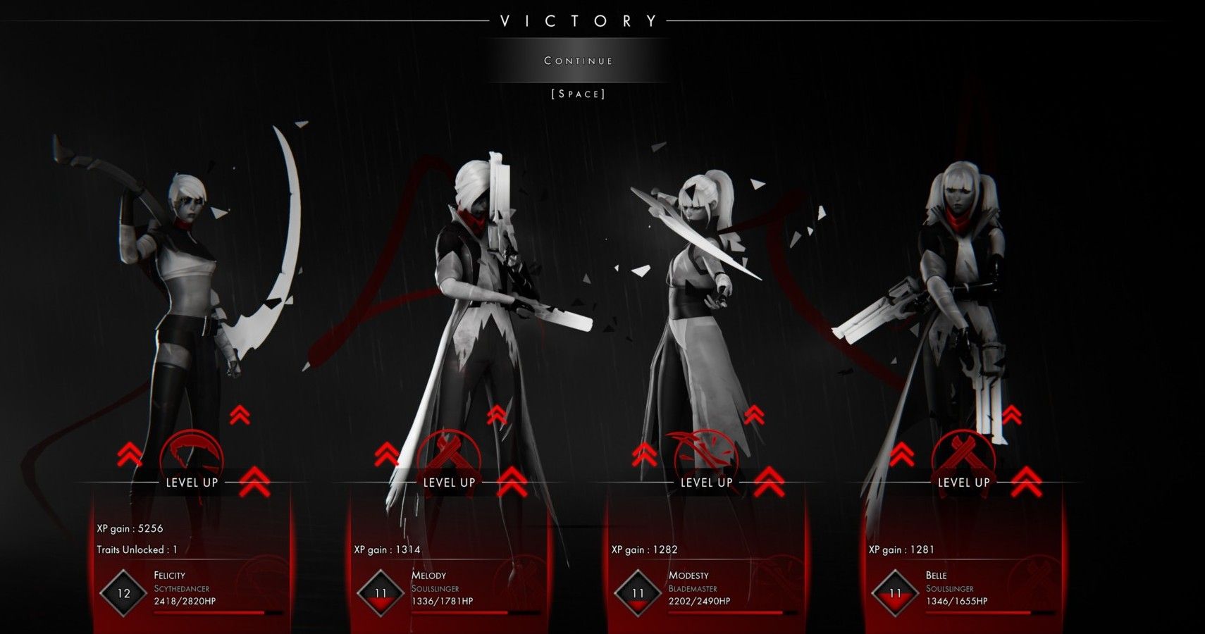 It behooves you to take as little damage as possible in Othercide. Enemies can deal out serious damage, and there’s no healing in between combat encounters. You can’t even heal up before the big bosses. Well, not unless you’re willing to make a small sacrifice. The only way to heal, you see, is to sacrifice one Daughter to heal another, and the kicker is that the sacrifice must be equal level or higher. No farming Daughters for healing; you must choose a life just as important over another. Considering how tough it can be to keep Daughters alive long enough to hit higher levels, not to mention how loaded with invaluable skills they’ll be by then, you really have to commit. It’s brutal, but it suits the harsh tone of the game.
