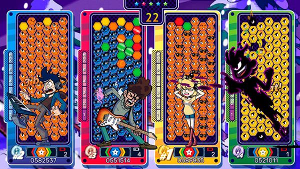 The the game threw something at me that made me wish I could turn it off immediately. The second level introduced the core of the gameplay, which is head-to-head matchups against AI-controlled characters from other bands you battle. At this point, it was a race against the computer to see who could clear the board faster.