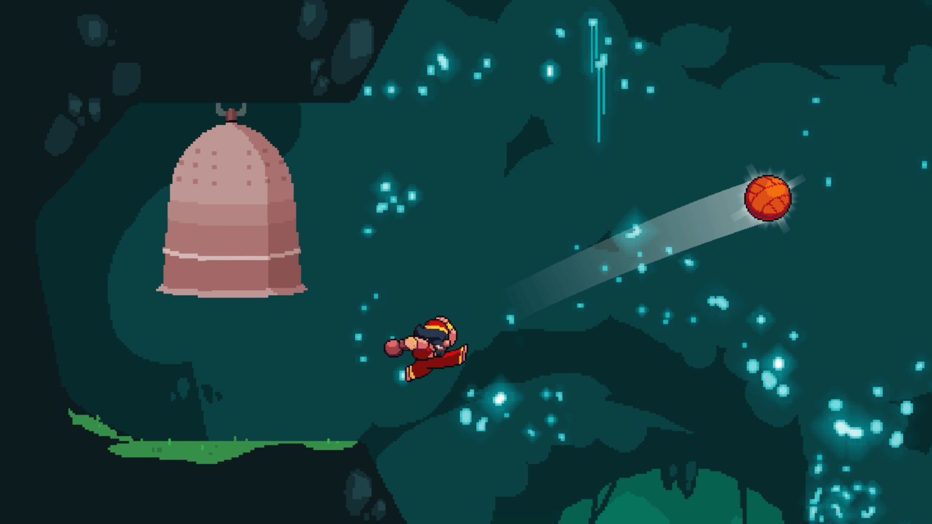 Let’s cut to the chase here. KungFu Kickball is simply about jumping into a 2D arena with one to three of your buddies locally, or strangers in online play. Just like every competition in the history of the world, the objective is to be better than the other team. Here, each side must ring a bell hung on the opponent’s side of the arena by kicking or punching the ball into it. Whichever side scores the most points, of course, wins. There is no story whatsoever; KungFu Kickball is simply about the competition.