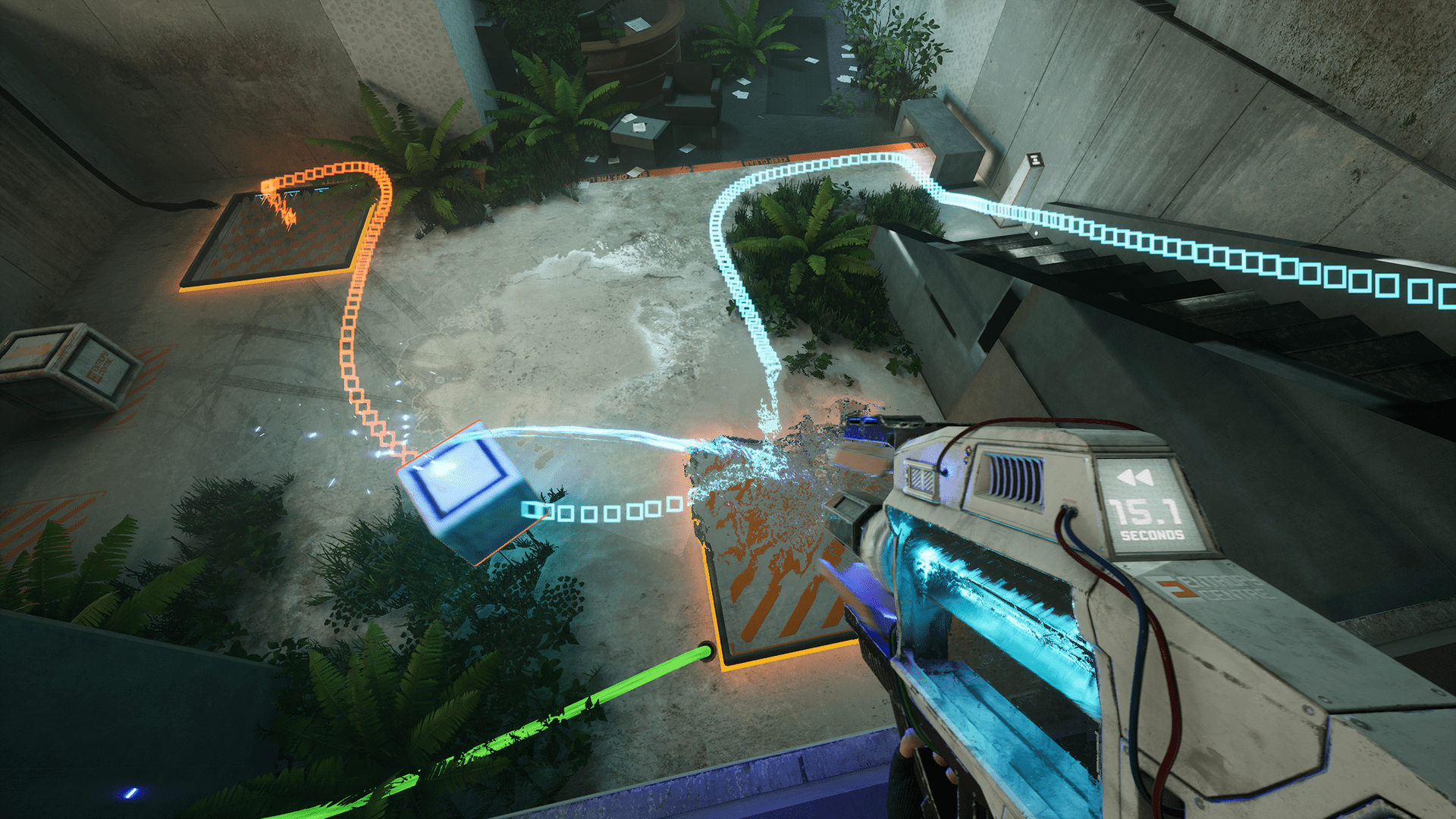 Again, I have never played Portal, nor Half-Life for that matter, but I have seen plenty of gameplay from those games to see that The Entropy Centre is heavily inspired by them. Like Portal, Aria uses a weapon to solve intricate puzzles in different areas. But unlike the portal gun, Astra is an entropy gun that can pick up objects in the environment, similar to the gravity gun in Half-Life. However, Astra has one additional perk: she can also rewind the objects in time, allowing you to move them around the environment to solve these puzzles.