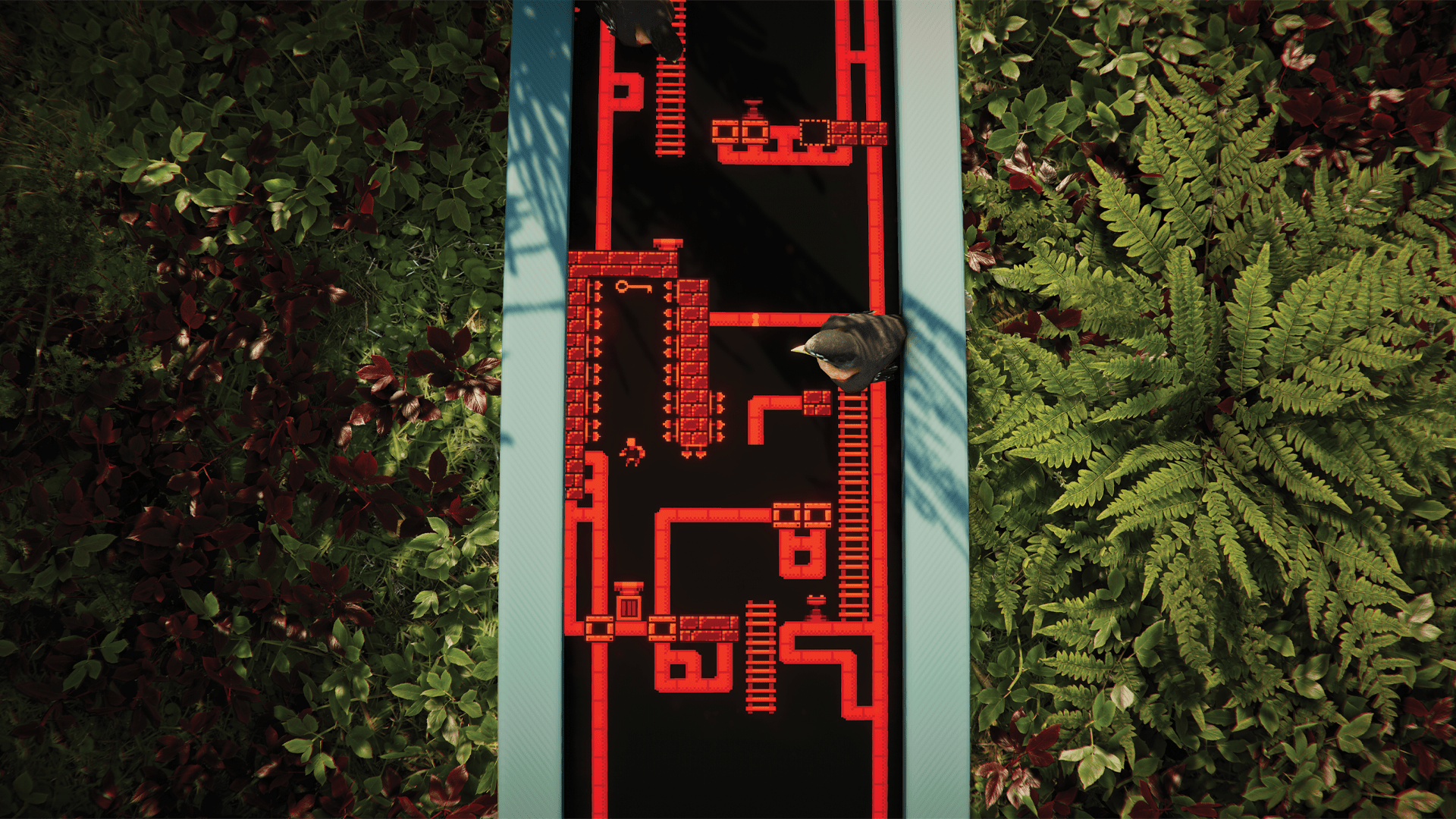 What caught my attention in The Forest Cathedral was the unique combination of gameplays present. You’ll spend a good portion of the game walking in a 3D space triggering events, much like in traditional walking sims. Let’s say you need to open a gate. In most games, you simply walk up, press a button, and the gate opens. Instead, you’re treated to a platforming minigame of sorts that is displayed directly in the game on a monitor. While you manipulate your “Little Man” on the small screen, you’ll still see the 3D environment around you, giving the illusion that Rachel is playing a game in order to navigate the island where she is working.