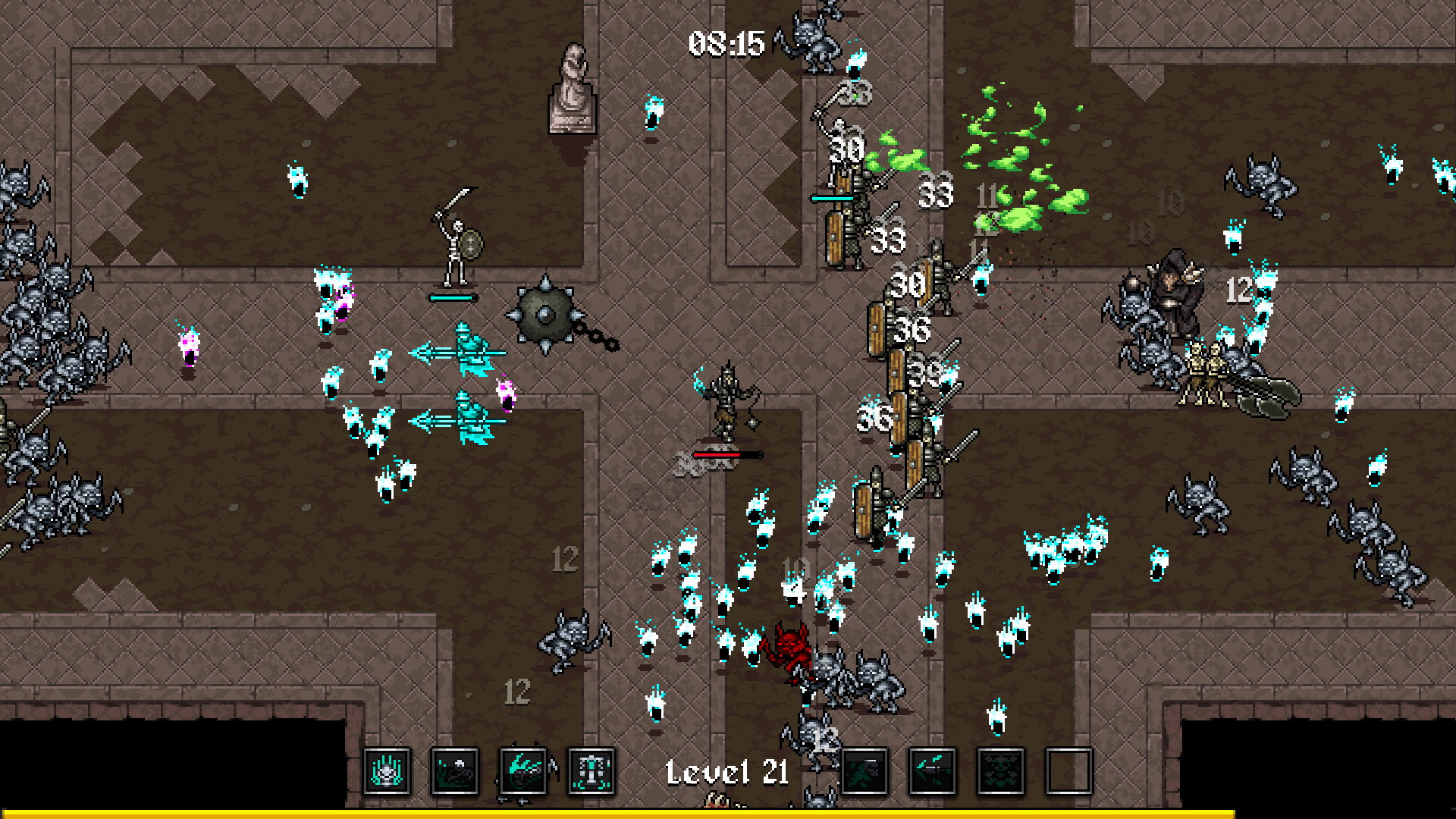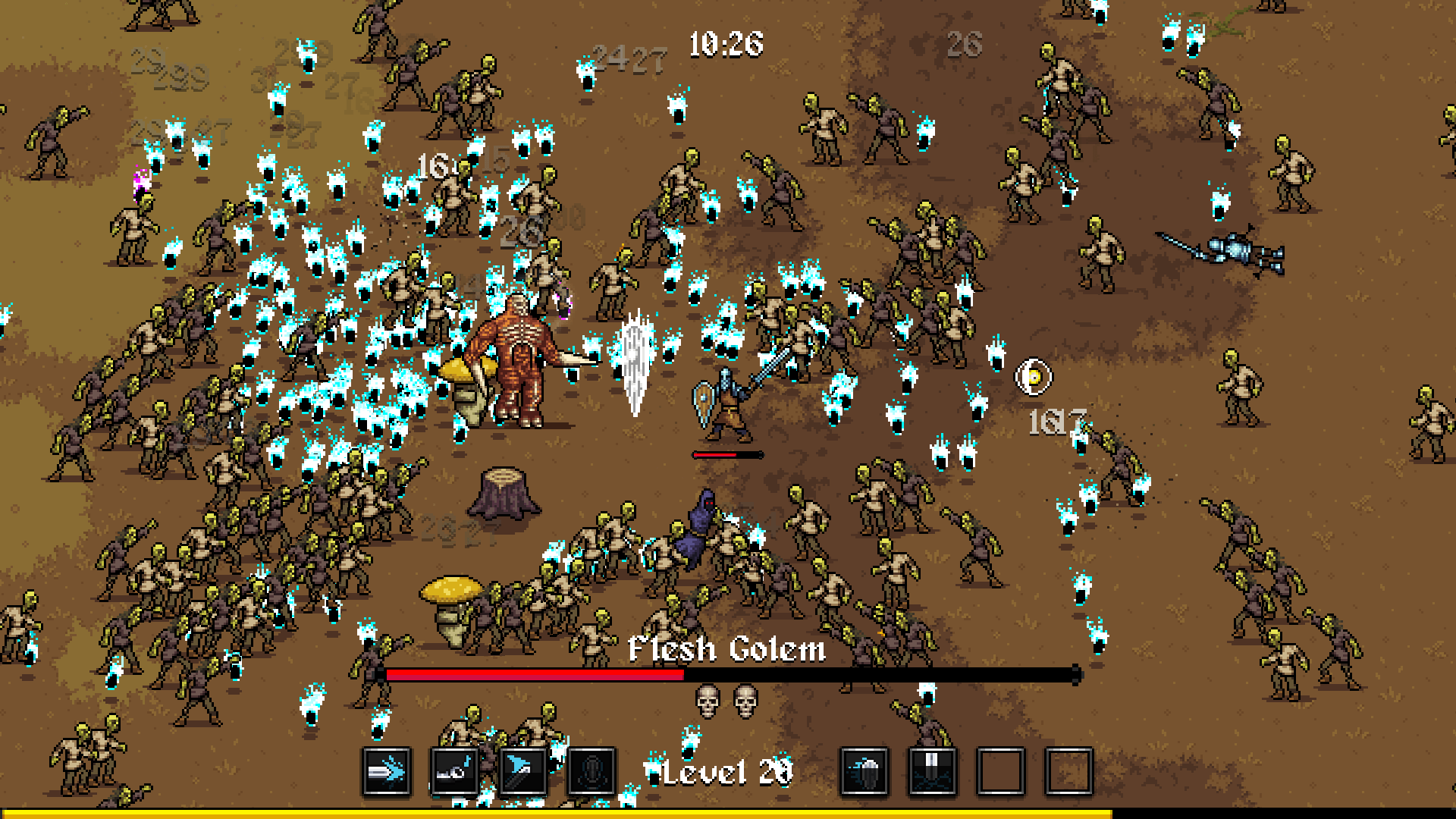 If it sounds familiar, that’s because its apparent that this game wouldn’t exist without Vampire Survivors. There are plenty of differences, however. The most prevalent is that there are zero weapon evolutions. You won’t unlock any mind-blowing abilities by acquiring secret combinations of weapons. Instead, you’re limited to new abilities, stronger versions of those abilities, and defensive buffs. You’ll learn that some upgrades work well together, but it’s simply not as exciting as evolutions. Most will just offer higher damage on your already-acquired skills. This is a bit disappointing, as I never quite reached that god-like state I’m used to experiencing.