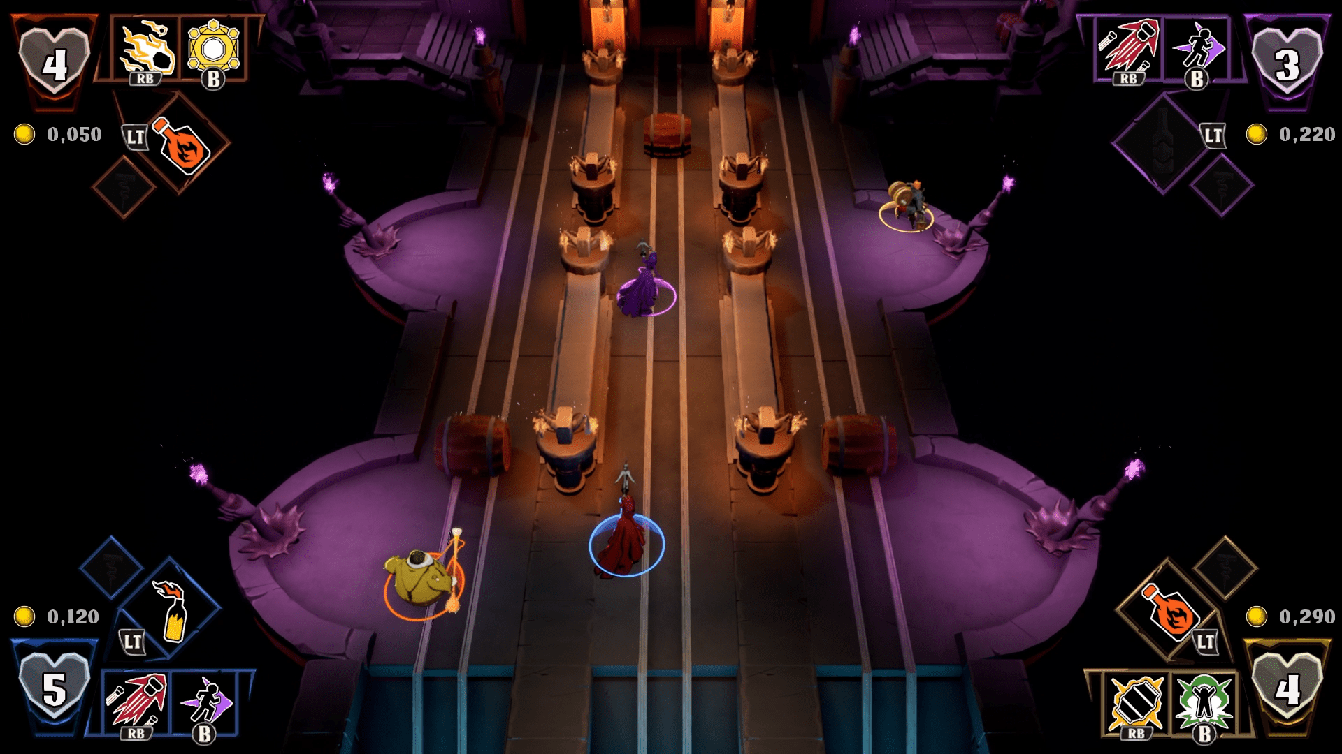Resembling many other dungeon crawl games, Brews & Bastards is a top down, shoot’em up style game that continues to bring a smile to my face. Starting with each room, mini bastards are after you with their own unique way of hurting you. However, the labyrinth has special power-ups to help you take care of these little rascals. Power-ups like the Moscow Mule where a statue of a mule comes down and squishes the enemy and explodes. The Champagne Corks shoot out of the bottle like a rocket to take down distant enemies. My favorite being the Molotov Cocktail and we already know how devastating those can be.