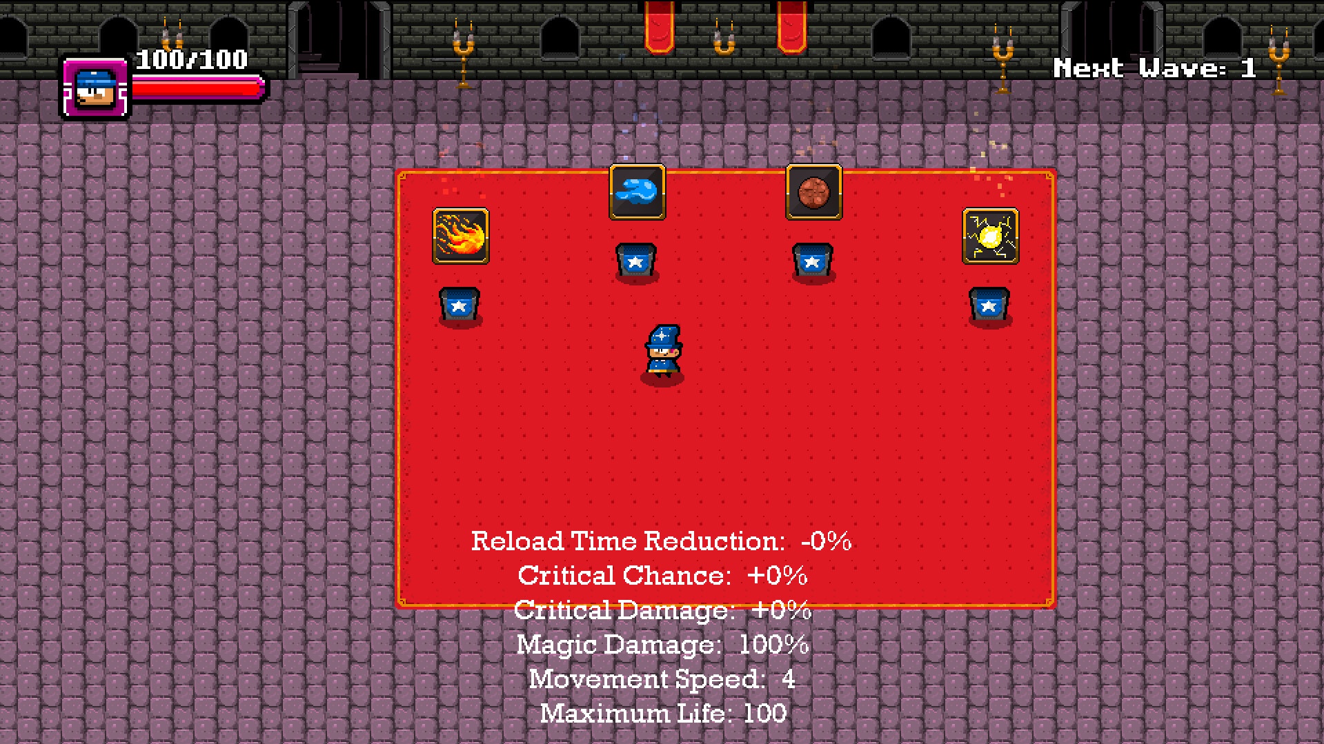 That’s not to say the game is busted or doesn’t provide pockets of enjoyment. You start by selecting one of four elements as your primary method of magic: electricity, water, earth, or fire. Your choice determines your ability upgrades upon completing each wave. You’re then immediately thrust into an uncomfortably small arena to start taking out various baddies. Once the room is clear, you’re offered three upgrade choices, sometimes which provide new magical abilities. Others offer speed boosts, crit chance increases, etc.