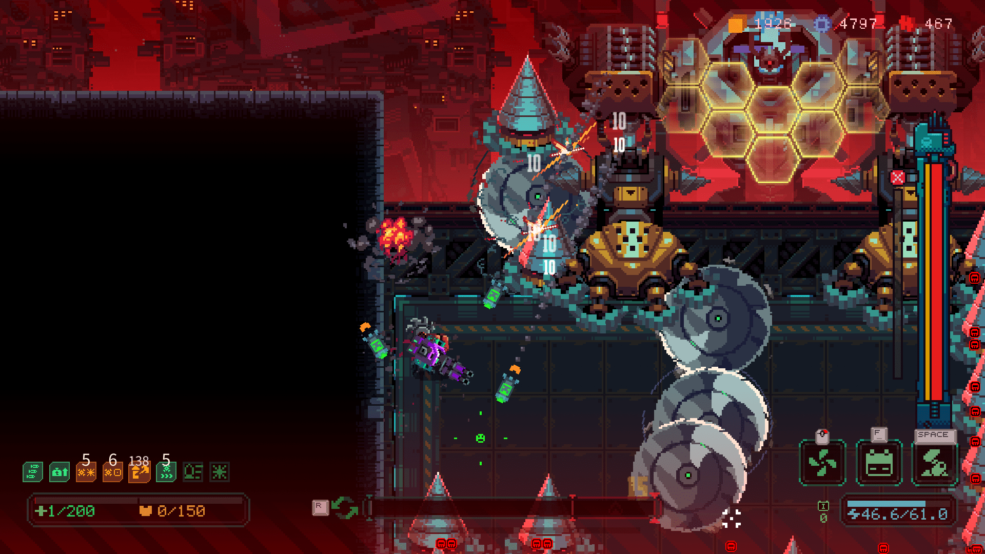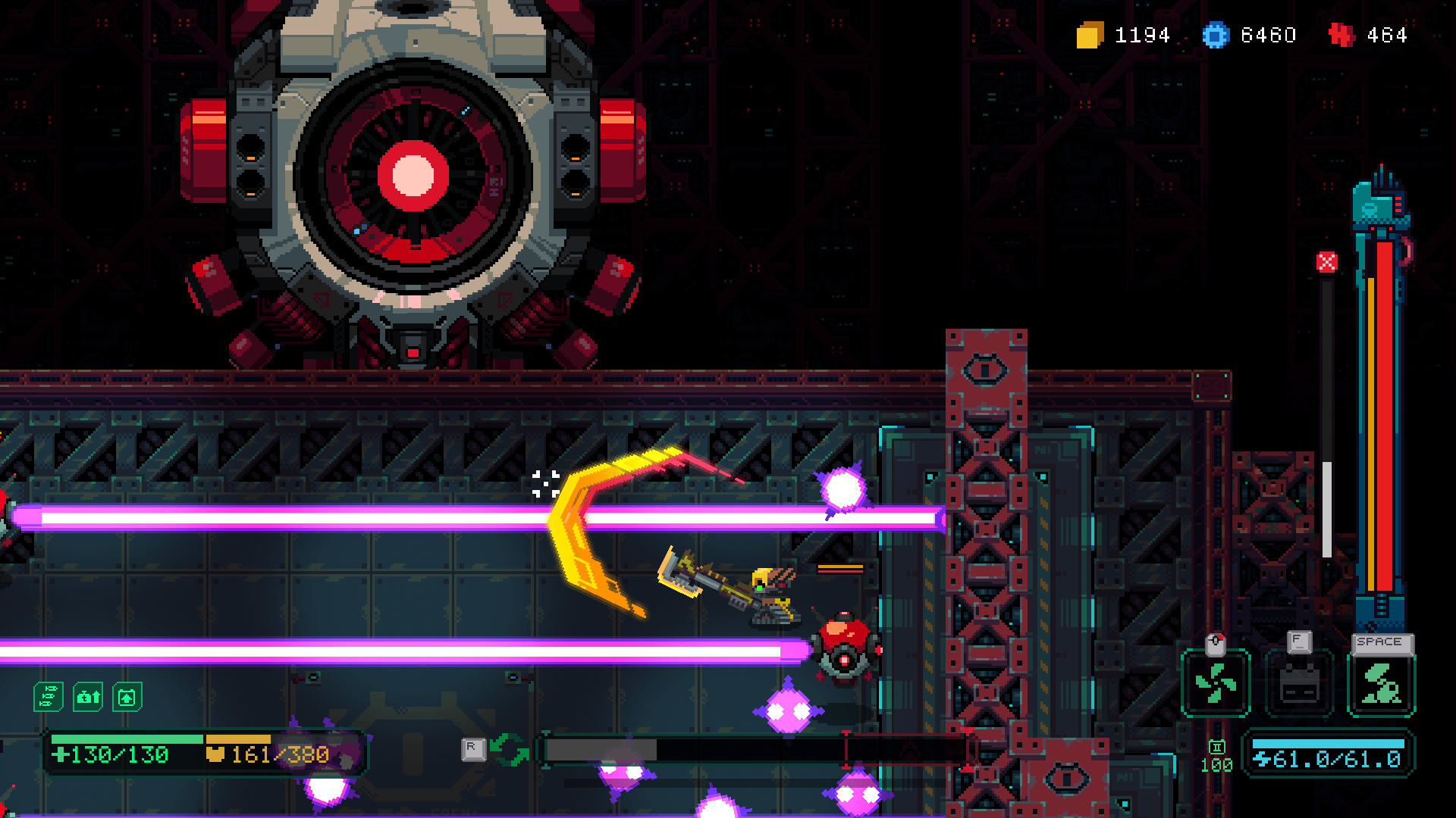 Like any other roguelike, there are permanent upgrades that are unlockable if you collect enough credits. Upgrades that can help you dash quickly away incoming enemies, cool down your weapons easier, and add some firepower to new weapons. Core and actuator upgrades help with the efficiency and effects of your awakened robot.