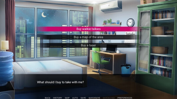 The plot feels like a 90’s slasher, and I absolutely ate up the three hours of suspense it gave me. Your choices matter in this visual novel, which means there are different endings and story paths. You can even indulge in some romance, if you’re so inclined. A battery icon will appear in the upper right of the screen when a choice is offered. If the battery shows low power, it’s a decision that doesn’t have much of an impact besides affecting the dialogue. If it’s at medium, it indicates a romance option. If it’s fully charged, that means your choice could result in a life or death situation. I really appreciated this addition and it made me more aware of the context of what was going on at the point.