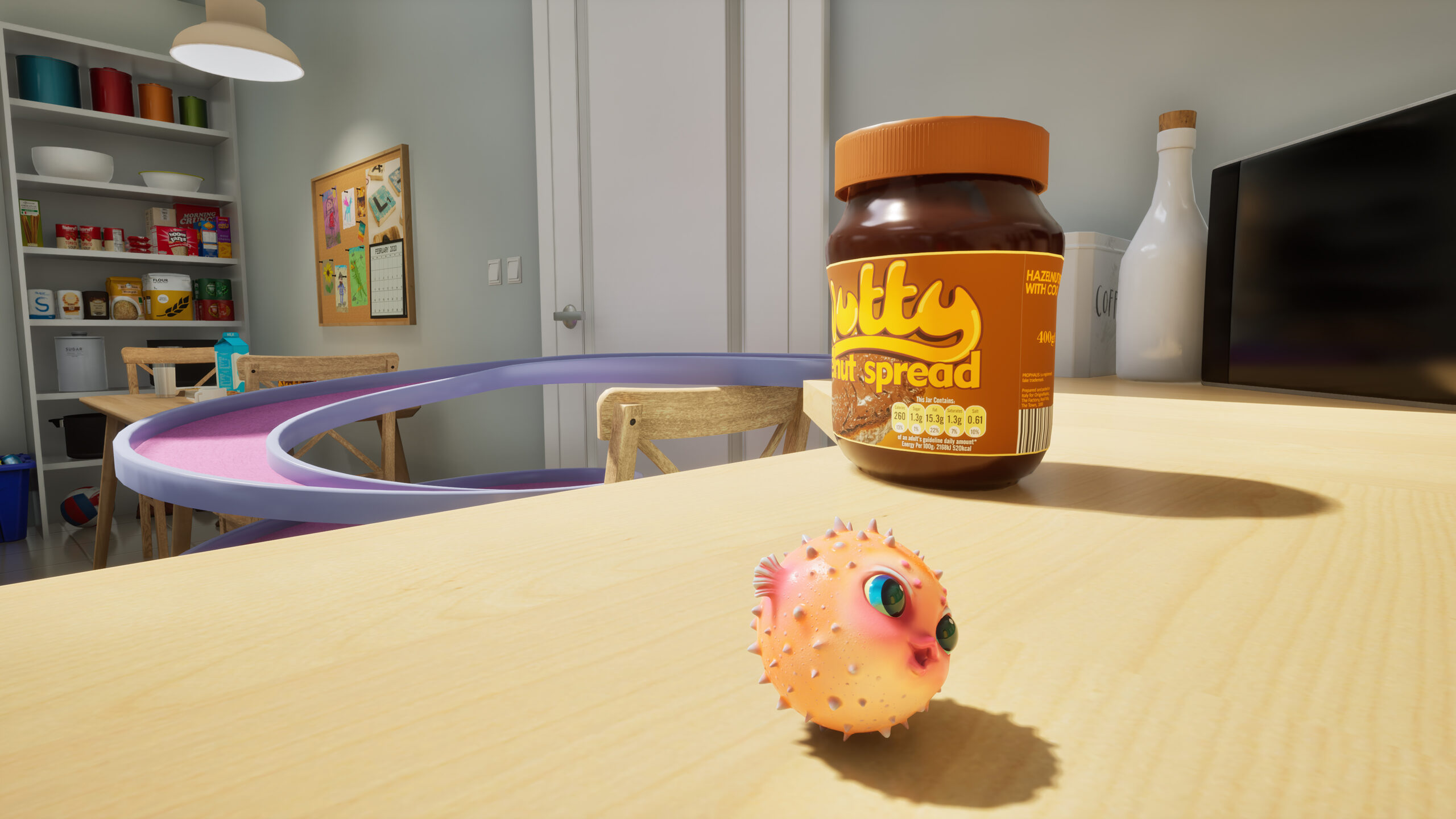 The novelty of House of Golf 2 lies in its setting. Instead of playing miniature golf on an outdoor course, you’re navigating your ball through a child’s bedroom. The path to each hole’s flag comes with obstacles including toys, race tracks, food items, and anything else you can imagine populating your own bedroom as a kid. It reminds me of Micro Machines on the NES rom 1991. This makes for a very fun and inviting method in which to play and ignites imagination and nostalgia in one fell swoop.