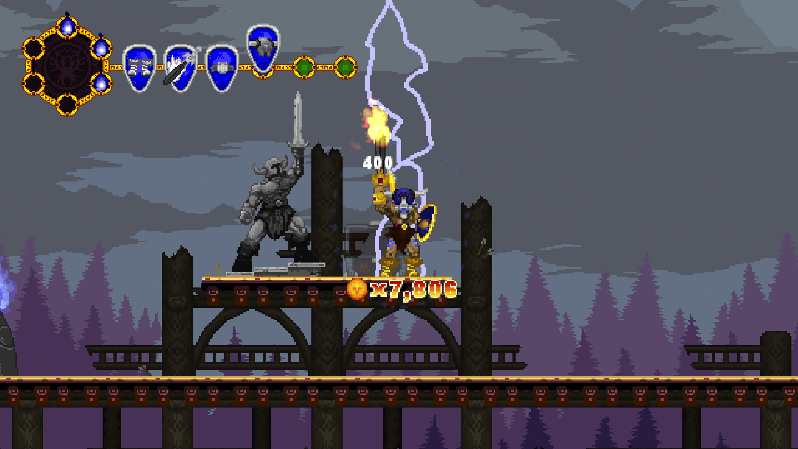 If you’re unfamiliar with the original game, both it and the sequel are very reminiscent of games from the 16-bit era, especially the Sega Genesis. All of the characters and animations are sprite-based, but without that annoying slowdown from older consoles. You are Volgarr, a muscle-bound Viking previously tasked by Odin to kill a dragon. Volgarr II follows immediately after the previous game and finds our warrior reclaiming his honor and bringing back peace to his newly-acquired kingdom. It’s not deep, and it doesn’t need to be. The satisfaction here comes from surviving each stage, not from a dense narrative.