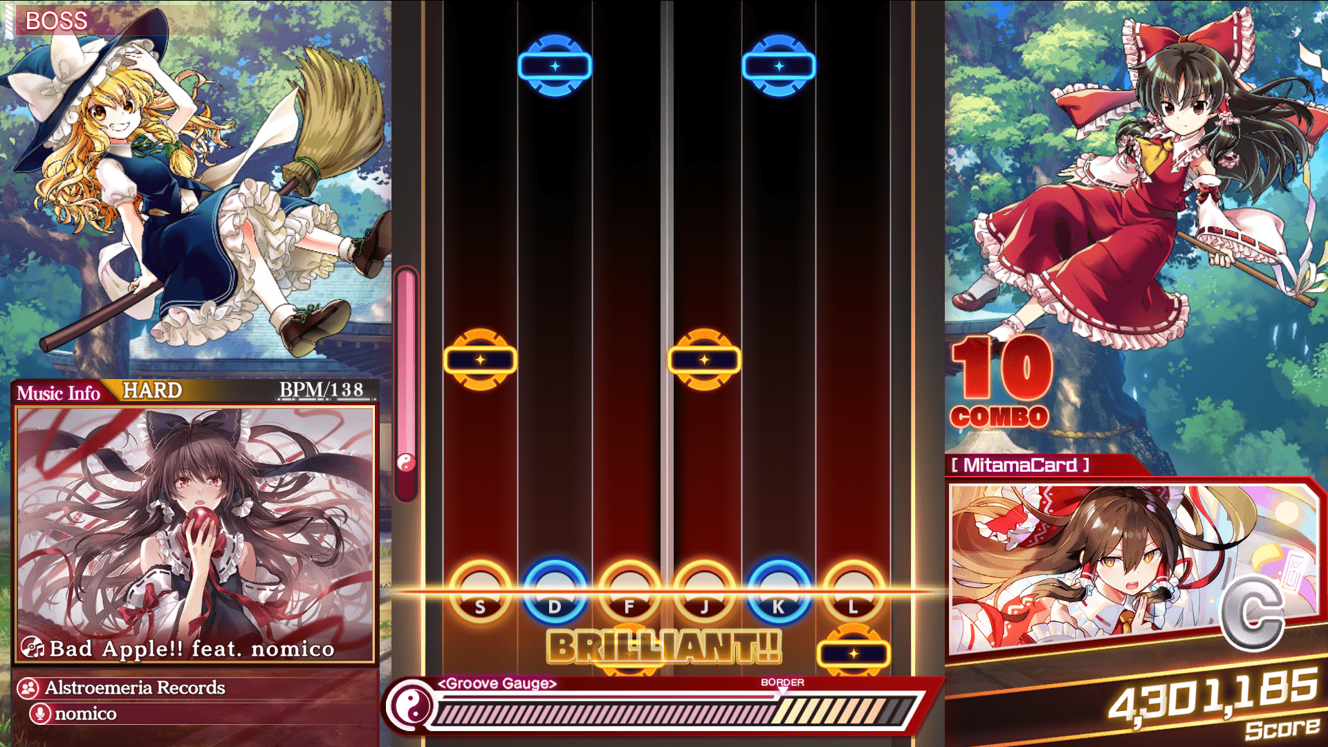 I do appreciate the depth of the story, but the reading was way too much for my taste. After a while, I just wanted to skim through the reading and get to the battles. I’m not sure if I can properly convey how much reading there is. You’ll have to try it yourself! The battles were fantastic. Plenty of difficulty options are available to shake things up a bit. Playing on Easy, especially with the touchscreen, was a cakewalk. Rhythm games like Touhou DKPL are more fun when there’s a challenge.