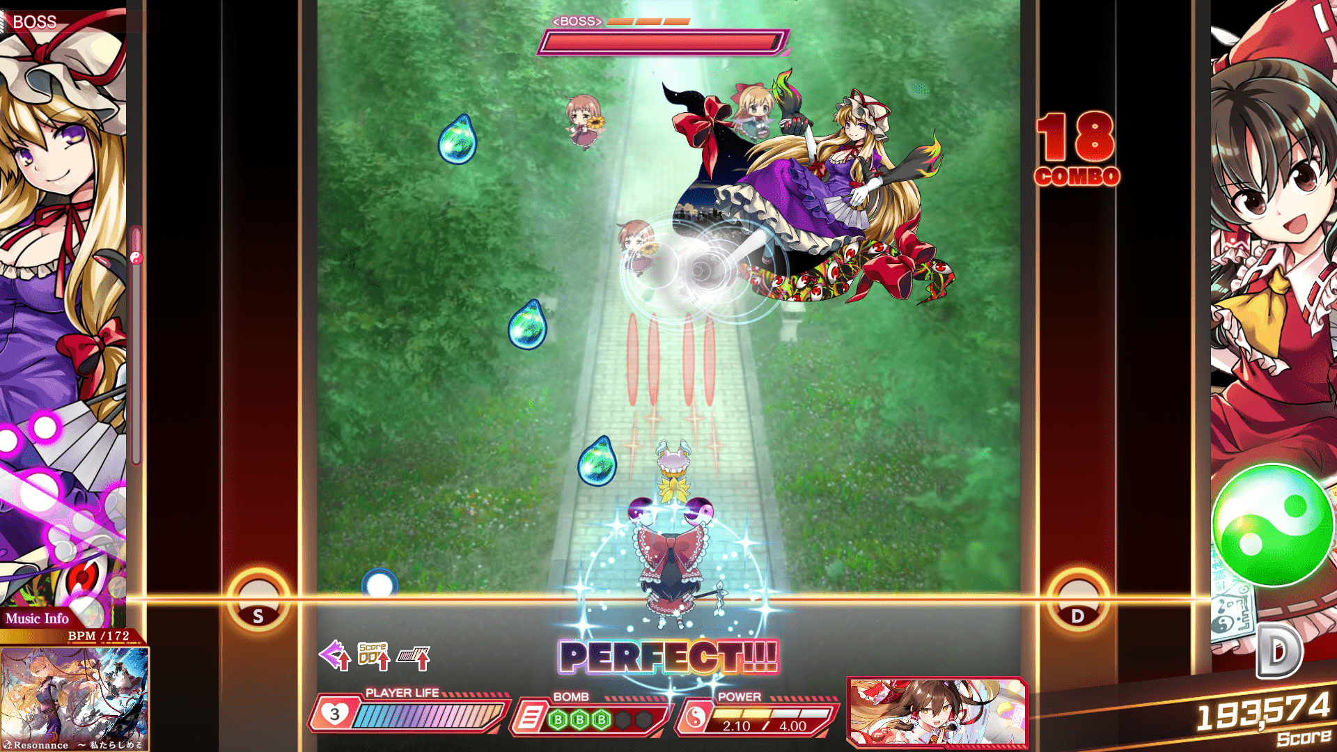 Touhou DKPL plays like a small novel. In between the rhythm-based battles is an immense amount of reading. They really want the player to be invested in the journey that Reimu is taking. I started feeling like this would be a great game for a 4th grader. Read, read, and read some more and the video game battles are your reward!