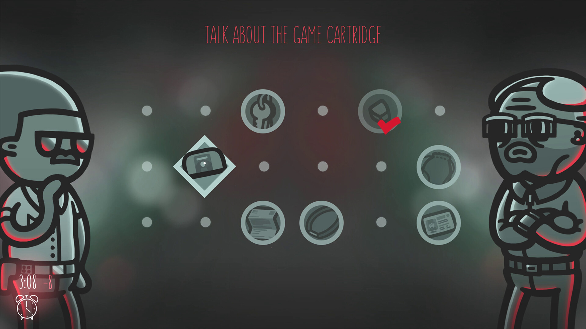 Circling back to the Mindsurf mechanic, this is a clever match-three minigame that makes the Mindcop live up to his name. You have to align bullets of the same color in a cube made of brain matter, twisting it as the projectiles come from all sides. It adds another layer of challenge which I enjoyed, but you can turn this off in the settings if it’s not your cup of tea. I’d highly recommend playing these segments, though. It allows you to upgrade each color of bullet, which opens up new avenues for Mindcop in his investigation. You also gain new insights into the individual you’re mindsurfing, as it portrays a truth, a lie, and an uncertainty. You can then use these topics in conversations with suspects.