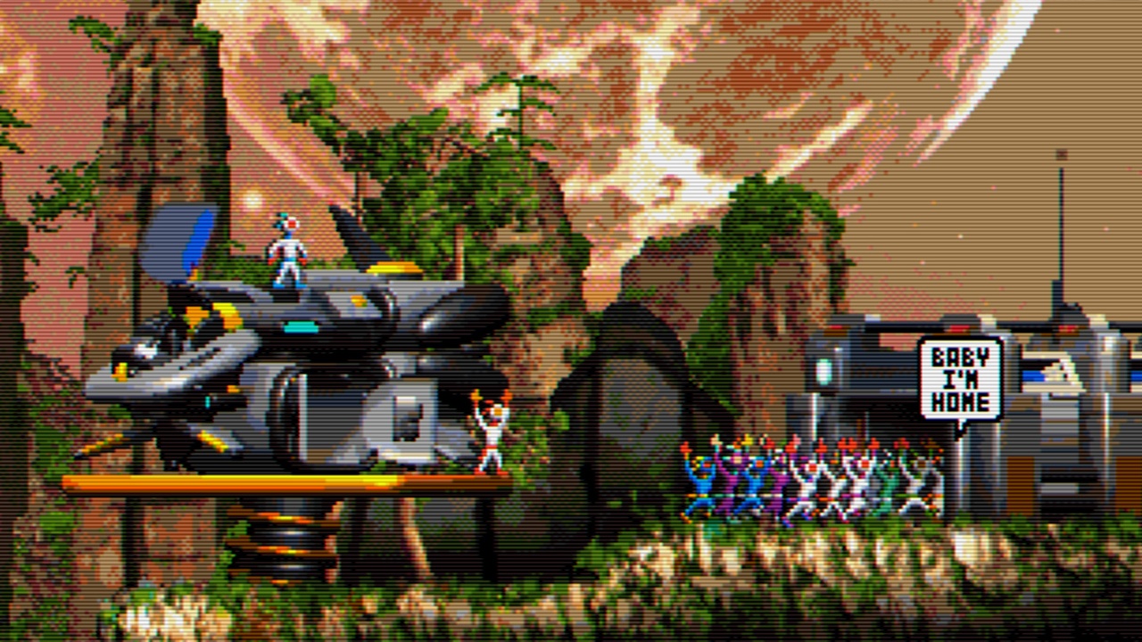 I have fond memories of gaming in the 80s. My first “console” was the Atari 400 which was graphically superior to the 2600. It was an 8-bit system although not as refined as the Nintendo a few years later. When Moons of Darsalon came up for review, I immediately felt those early generation system vibes and was interested. Then I saw that they threw in some comic relief and later-gen quality and added that into a story which already made me want to try it. So, here we are!