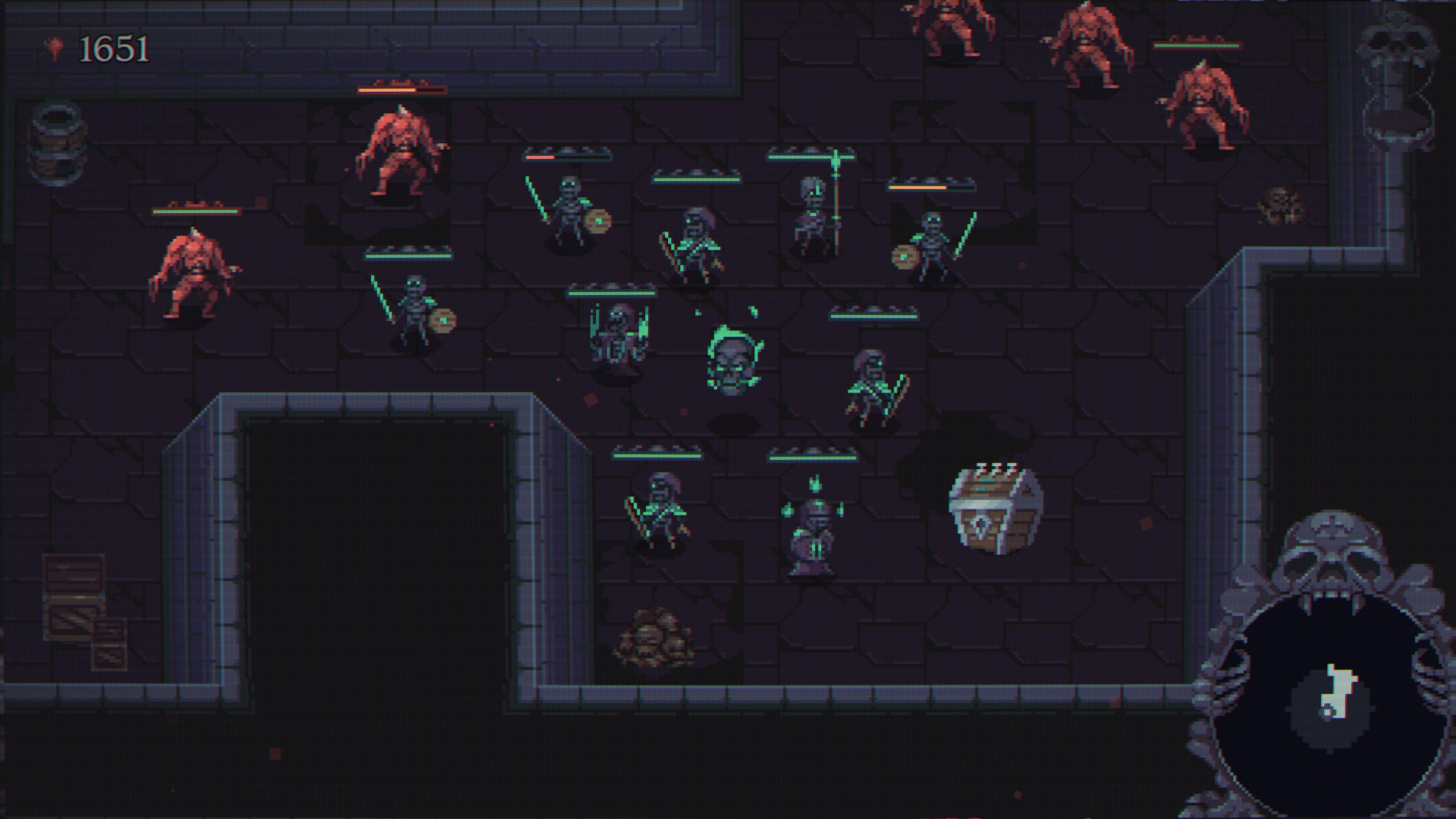 - Procedurally Generated Dungeons: No two dungeons are alike and each level features a variety of enemy types, ensuring that builds must be tinkered and tweaked to overcome their attacks. Unique challenges that reward new unlocks and content will also keep you on your skele-toes.