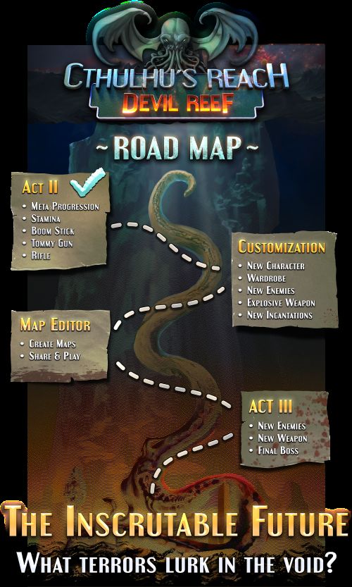 Cthulhu’s Reach: Devil Reef is a Lovecraftian action-roguelike co-op dungeon crawler developed and published by The Fine Arc. Set to launch later this year on PC, the game is Steam Deck verified. A newly released roadmap details upcoming features, including customization, map editing, and Act III.