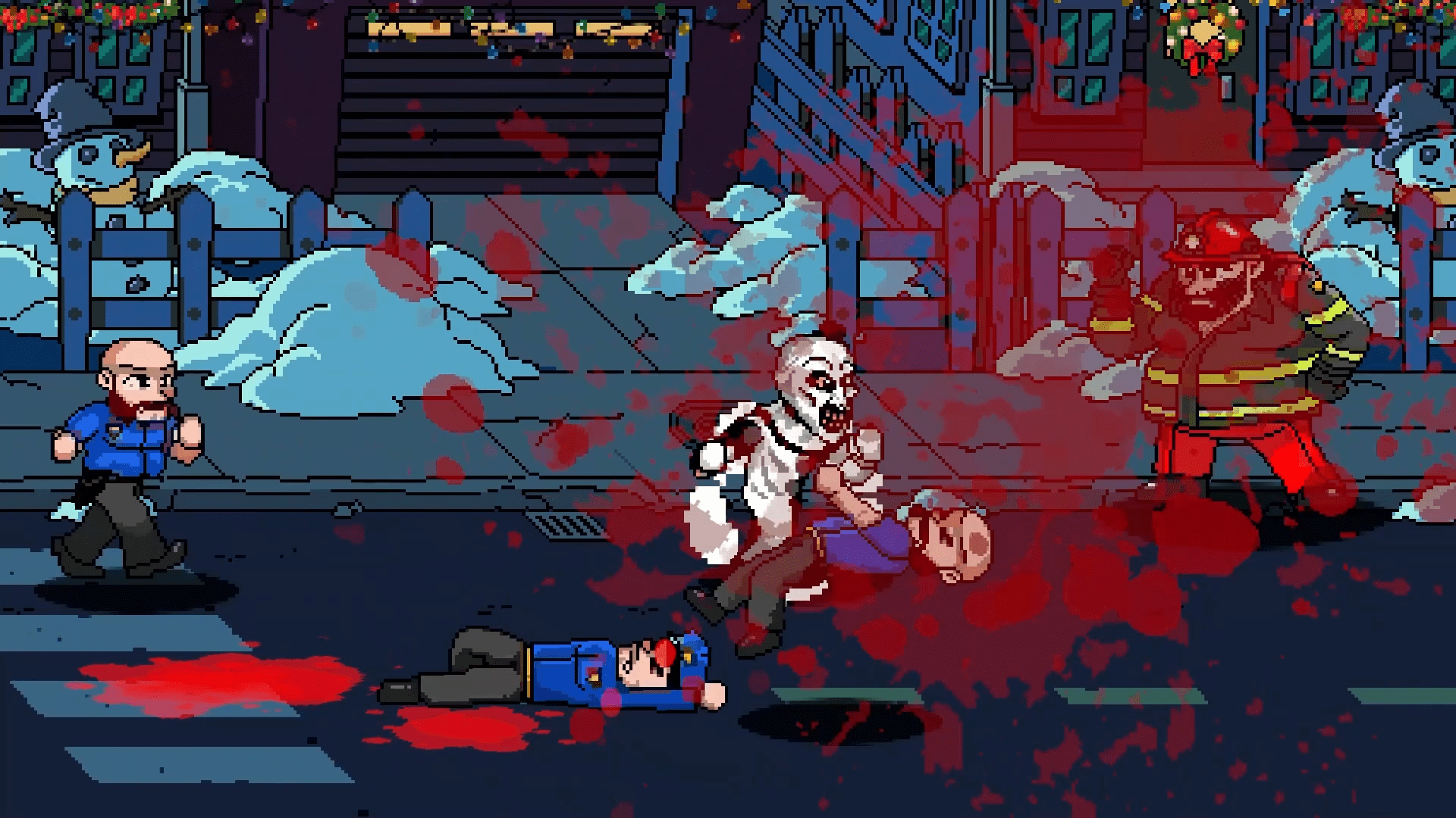 - Gorgeous Pixel Art & Animation: The game captures the essence of the Terrifier films with bright, cartoonish pixel art and fluid animations that vividly depict the gruesome action.