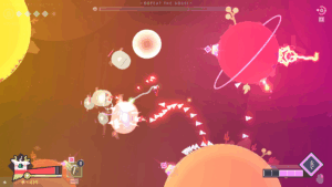 The Spin-Gun serves as both a weapon and a propulsion device—aim and fire downward to launch yourself into the air. The gravity mechanics are heavily reminiscent of Super Mario Galaxy, especially on smaller planetoid-style levels with their own gravity fields. CTRL is used to create a shield, interact with dialogue, and access power-ups, while SHIFT operates a ranged “Sword” attack that packs a punch.