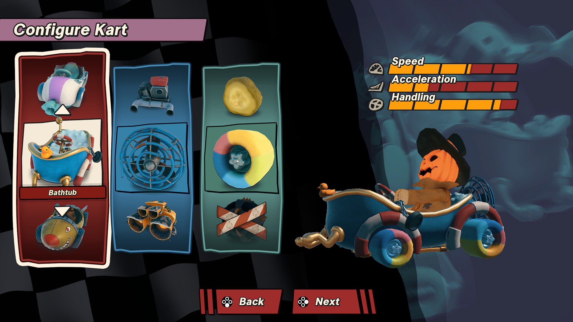 Tracks mostly stick to rural, farmland themes with modest visual variety, and the game’s collision detection sometimes feels a bit unforgiving. It’s easy to get stuck or bump into invisible barriers, which can derail your race and push you from first place to last in an instant. It happens so often that the game includes a respawn button to help you get back on track. But using it costs valuable time. Power-ups don’t play as big a role as in other kart racers, with the ghost pepper boost standing out as the most effective item.