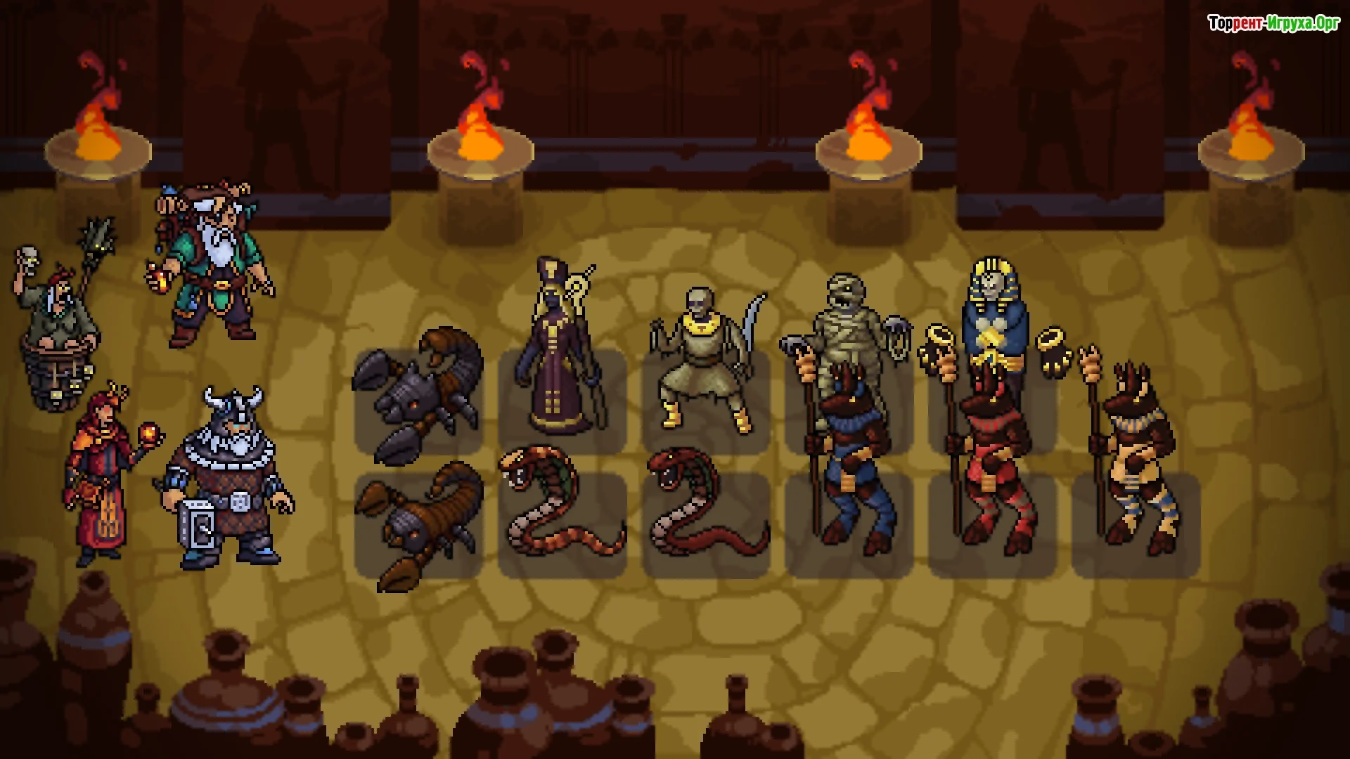 The pixelated art-style is very well done. The creatures are very distinct, with some looking grotesque or intimidating. The backgrounds and environments are nicely crafted, whether from an arid desert fighting scorpions, to creepy dungeons battling different demons. If you like games with pixelated art, most would appreciate what Battlecruiser Games has created.