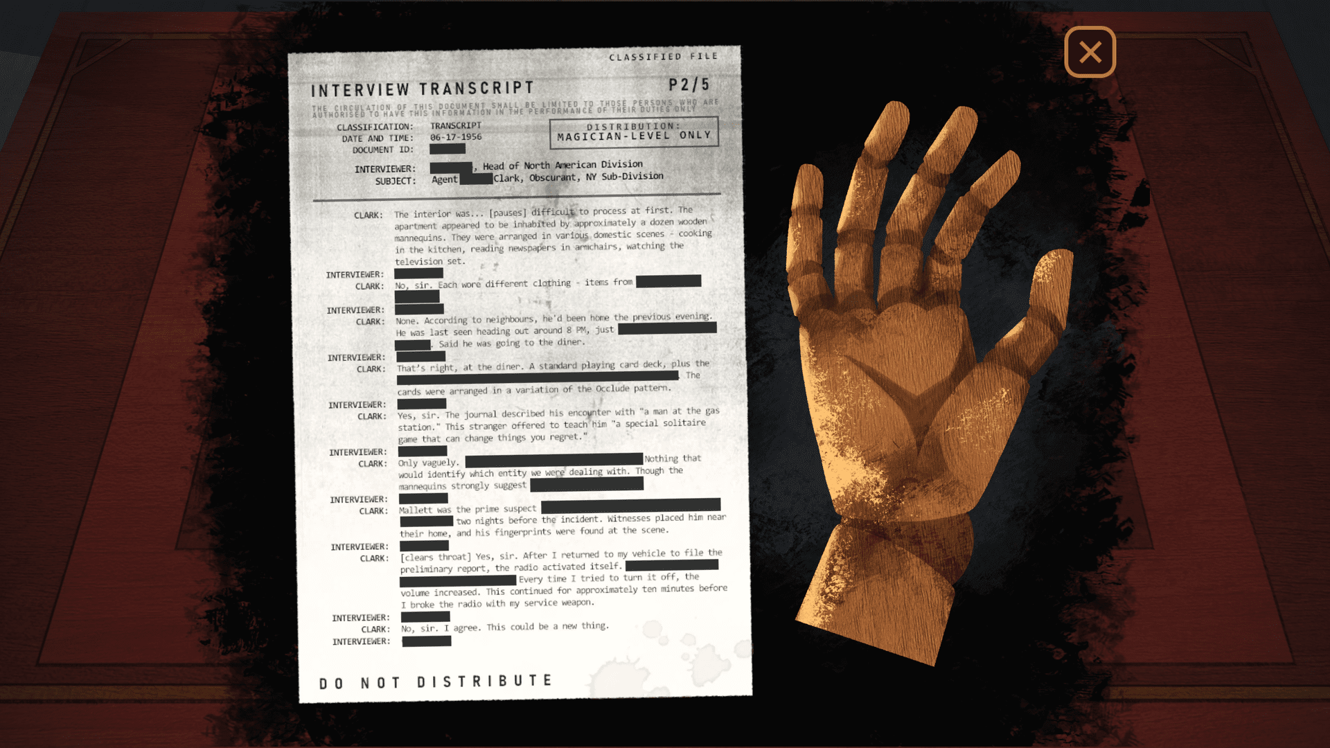 Occlude also invites players deeper through a free alternate reality game (ARG) titled Seven Cards, Seven Rituals. Running alongside development, the ARG offers additional layers of lore, presented through archival materials and cryptic clues. The game is packed with secrets, and the final Ritual promises a particularly memorable challenge.