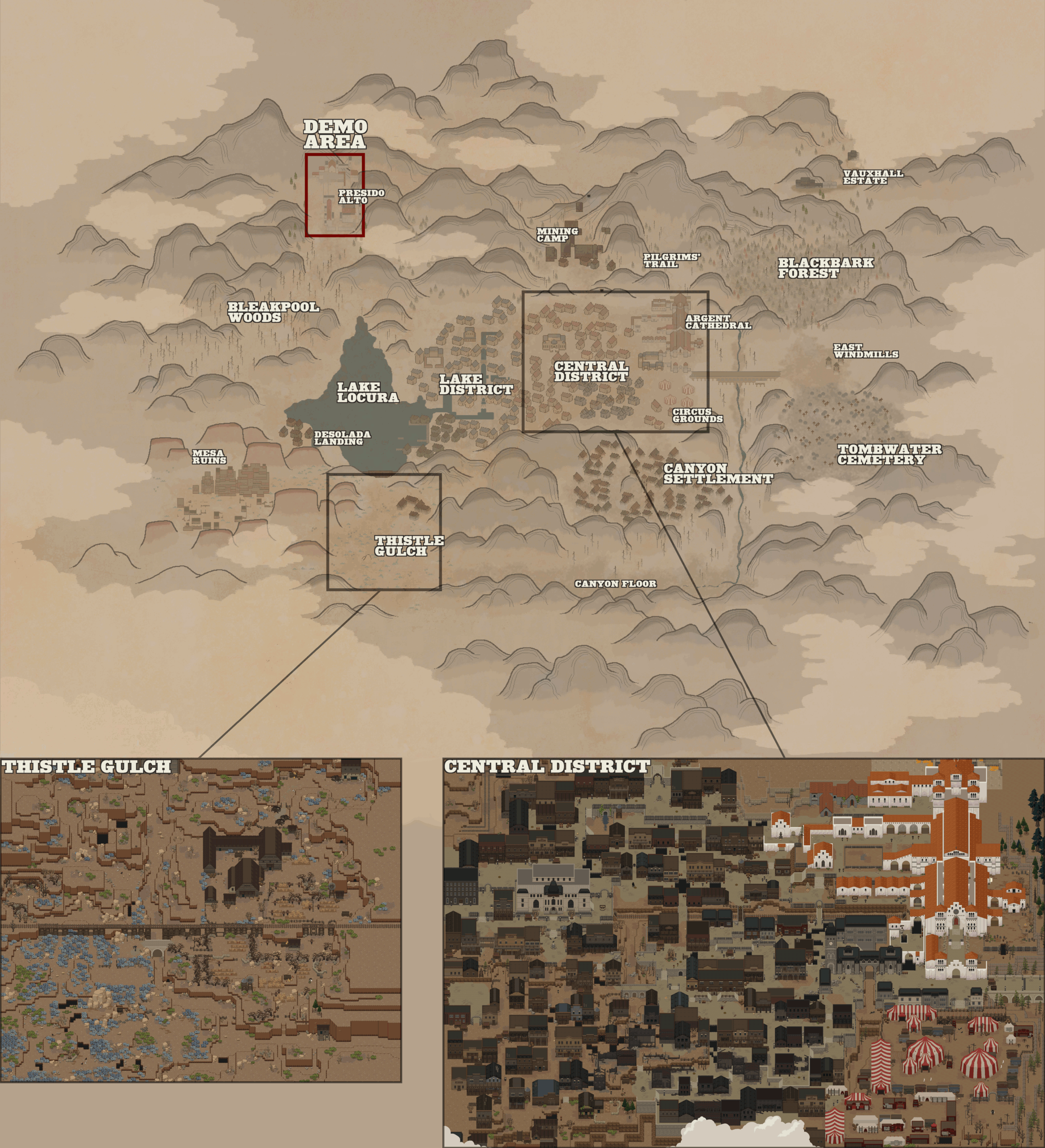 On Friday, Midwest Games and Mraz shared the game’s full in-game map, revealing nearly twenty interconnected biomes. The world follows a classic Metroidvania structure. Players can explore some areas freely, while others require new abilities, specific items, or major boss victories to access. The playable demo, available now, features the Spanish Fort region. This is just 5% of the full map. Mraz compared the world’s scope to The Legend of Zelda: A Link to the Past, explaining that after six hours of play, they hadn’t even reached the halfway point. The full game also includes hidden zones like mines, sewers, tunnels, and the mysterious Lost City deep within the mountains.