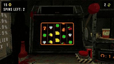 How do you make a game about playing a slot machine dark in theme? As it turns out, a number of ways. For reasons unknown, you find yourself trapped in a tiny room covered in grime. You have access to the following tools: an ATM, a ticket dispenser, a shelf of ever-changing items available for purchase, a red telephone, a toilet, and of course…a slot machine. A voice tells you that your only way to get out is to play rounds of a slot machine and earn enough money to survive to the next plateau. Come to think of it, a better comparison might be the game Luck Be a Landlord. This game, however, feels more like something out of the next Saw movie. If you don’t make the deadline, a trap door opens beneath your feet, and you fall into a pit of spikes.