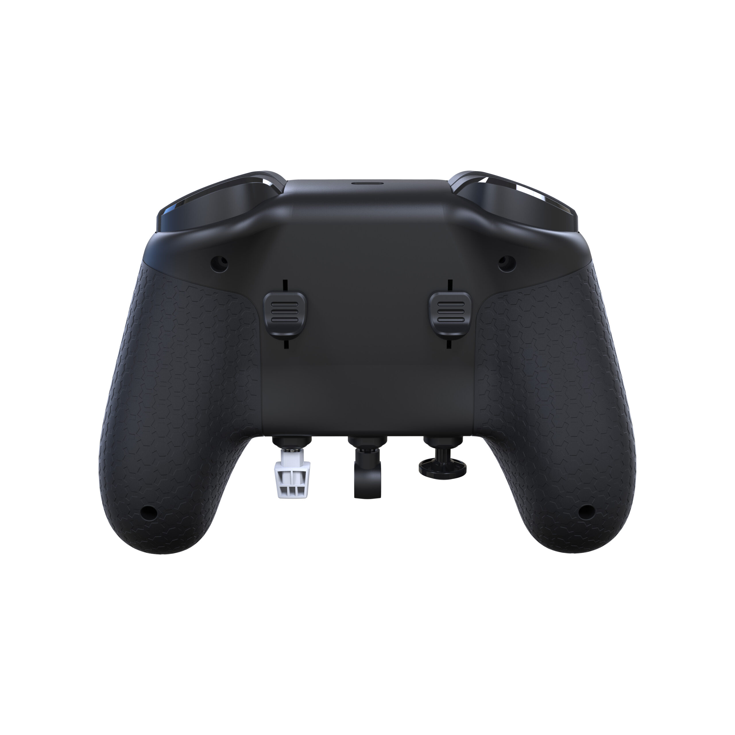 Most unique however is on the back side of the controller. There you will find a set of linked rudder controls that you can work with your middle fingers. Being linked means that it feels like the real rudder pedals. Push one and the other side responds in the opposite direction. Incredible!